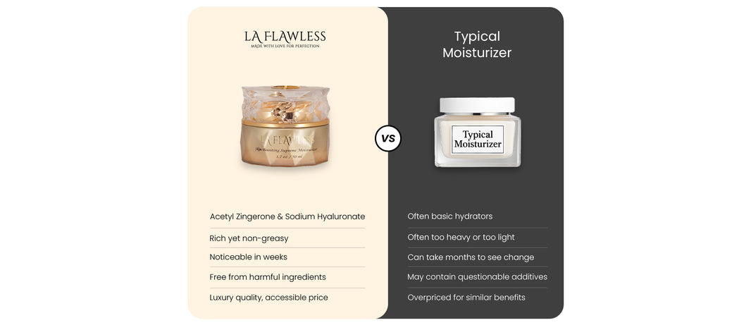 Unlike other brands that rely on fillers and synthetic additives, La Flawless carefully selects each premium ingredient for its proven efficacy and skin-nurturing properties, ensuring our formulations deliver real results without compromising your skin's long-term health.