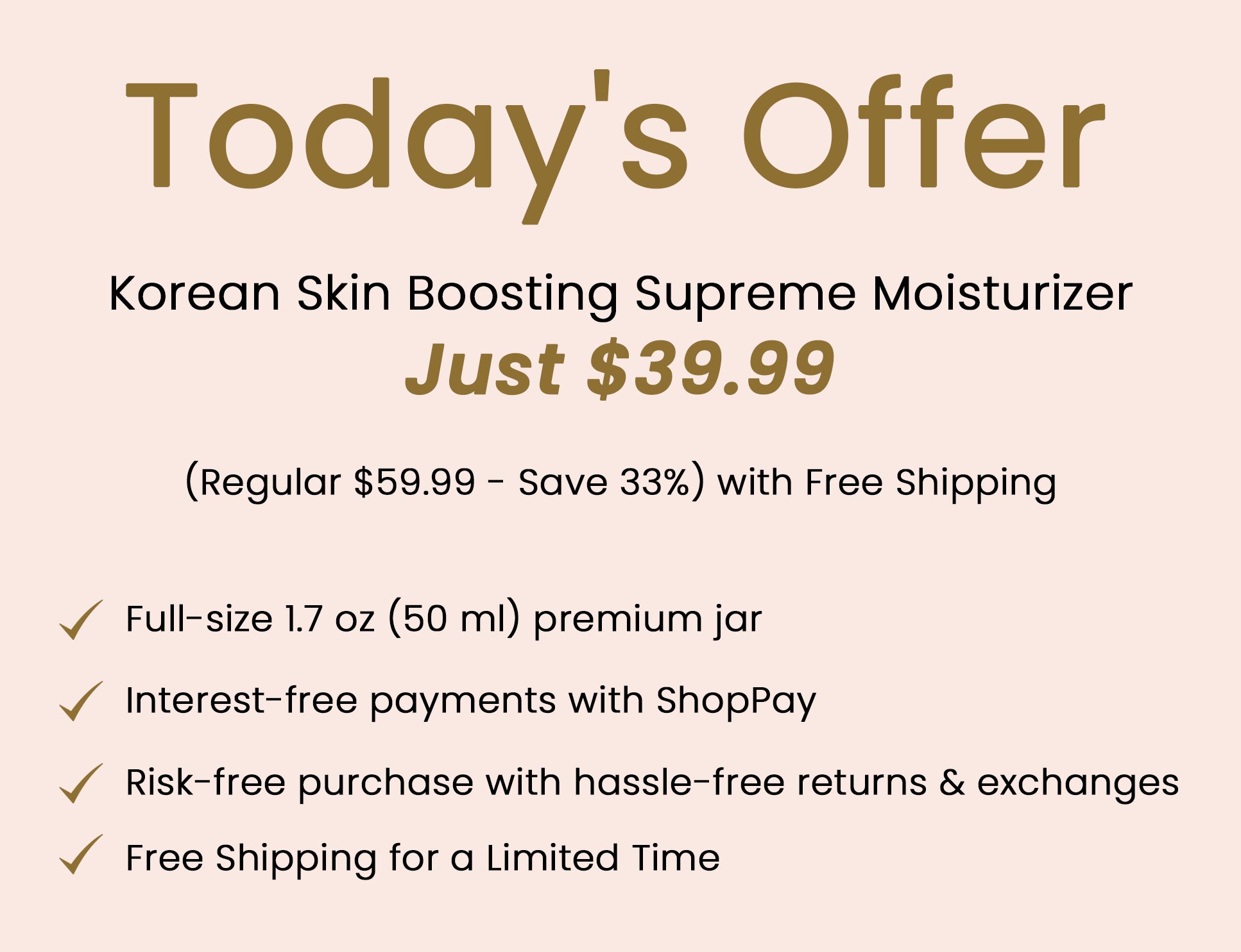 See the difference the Korean Skin Boosting Supreme Moisturizer can make. Our users experienced smoother texture, enhanced firmness, and a luminous glow in just a few weeks.